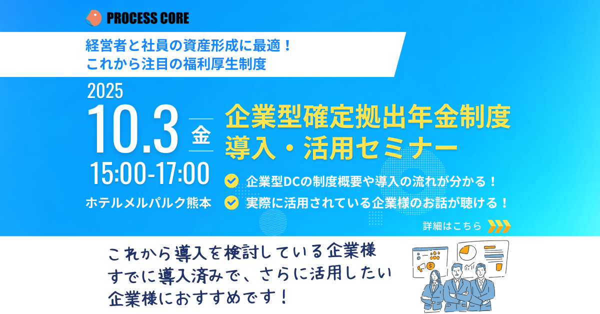 この度、プロセスコアでは、上記のような悩みをお持ちの経営者様におすすめの「企業型確定拠出年金 導入・活用セミナー」を開催いたします!